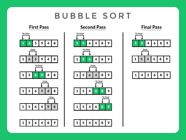 1) Bubble sort repeatedly steps through the list to be sorted compares each pair of adjacent items and swps them if they are in wrong order.